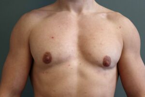 During his consultation with me, he was noted to have a BMI of 23 which is in the normal weight range. His breasts were around a “B” cup size (photos A, C and E). In a natal male, this looks just like routine gynecomastia.